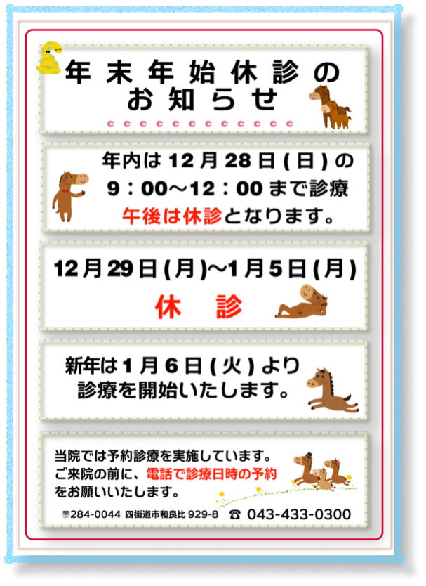 2025年12月4日木曜日 2025~26年末年始の休診日